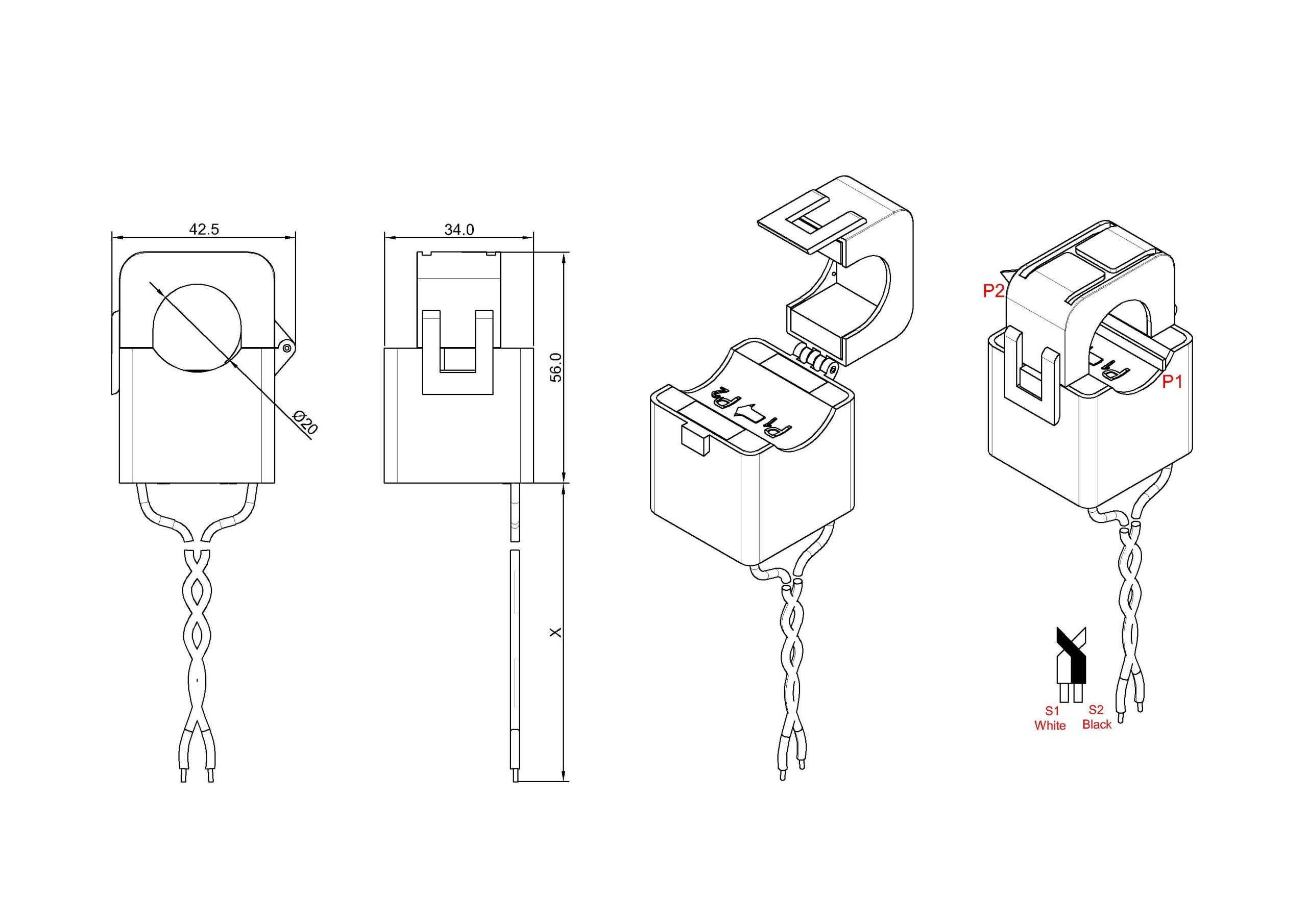 Jiangyin Spark XH-SCT-T20 Series split-core current transformer senses AC current from 0 to 200Amps passing through the center conductor.Split core CTs are designed for fast and easy installation.The split core design permits non-contact current measurements through magnetic field induction without requiring that the primary wire be taken offline and disconnected for CT installation.This method permits a safer,easy and portable current measurement.